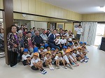 最後に♪おじいちゃんのおとしをみんなで歌い、♪おじいちゃま おばあちゃま の歌を年長ゆり組が心を込めて歌いました。「おじいちゃん おばあちゃん いつまでも おげんきで!」と言葉のプレゼントをしました。中には涙を流して喜んでくださっているおばあさんもおられ、子ども達の自己有用感につながったと思います。