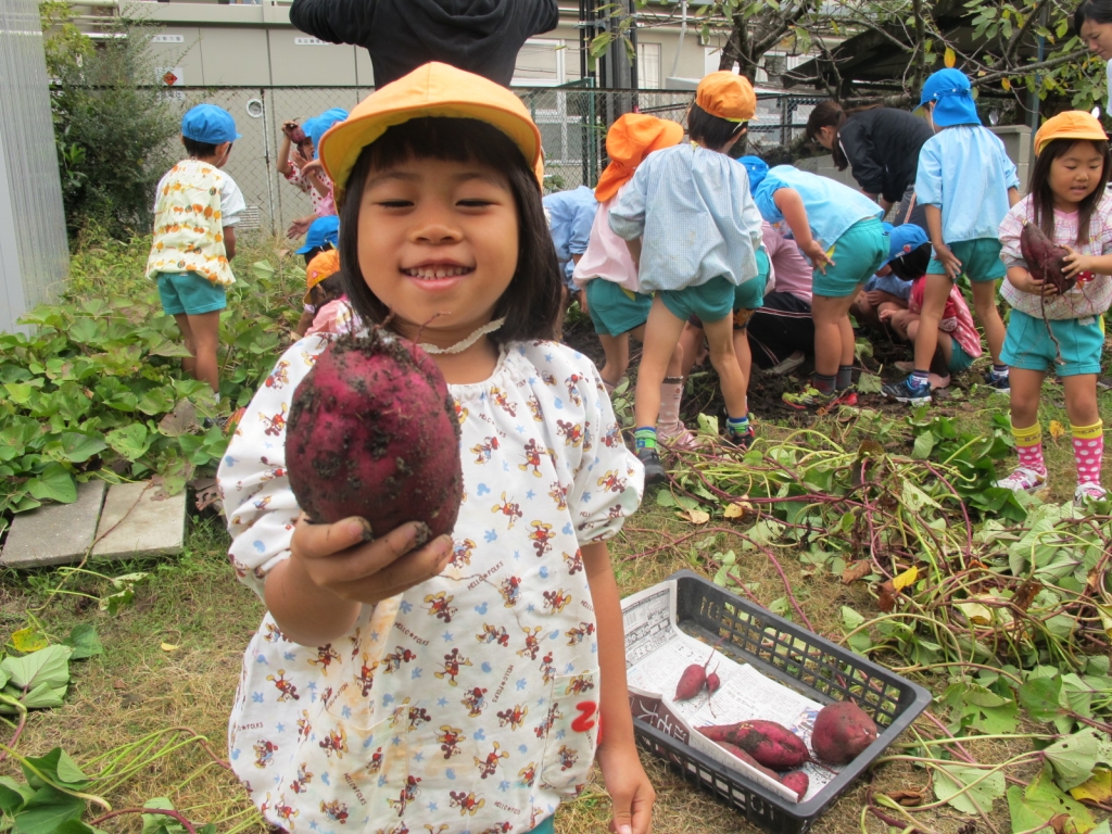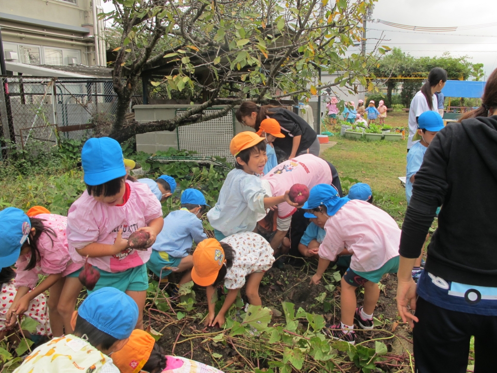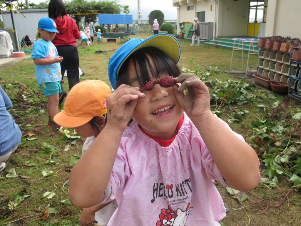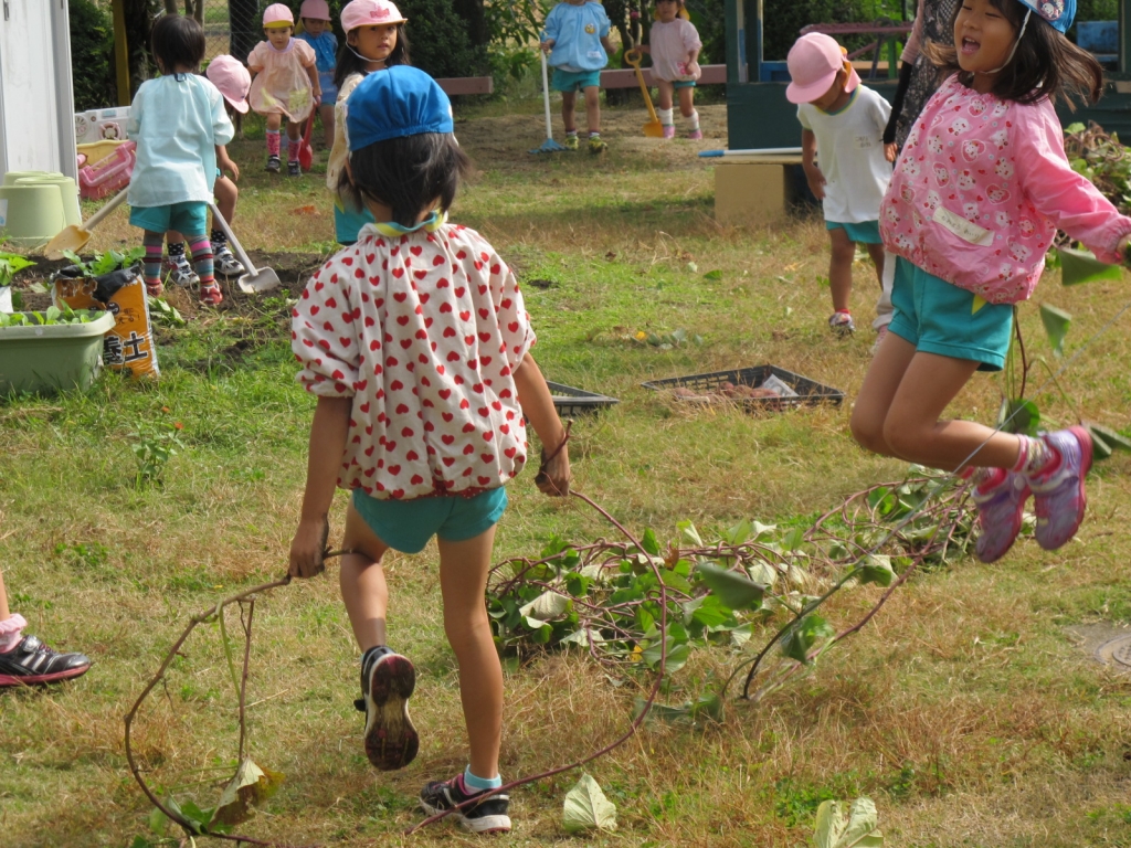 つるをひっぱると大きなおいもが、ごろごろ・・・おいものつるで
