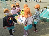 代表で、4月から年長組になるすみれ組さんが小学校に届けに行きました。
