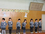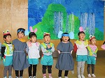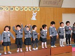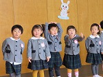 年少うさぎ組は初めての発表会。「ぞうくんのさんぽ」のお話から「みんなでおさんぽ」の劇遊びをしました。たくさんのお客さんの前でもいつも通り元気いっぱい発表できました。