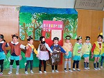 2月3日 生活発表会を行いました。子ども達はごっこ遊びが大好きで、日頃からいろいろな動物になって追いかけっこをしたり、ドレスやマントを身につけたりしてなりきって遊んできました。毎日クラスで読んでもらう絵本の中から、みんなの大好きなお話ができ、そのお話をもとに劇遊びをしました。歌や楽器遊びもずっと親しんできたクラスのお気に入りを発表しました。