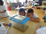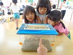 「みせて~。」4歳児すみれ組さんのお友達も来ました。