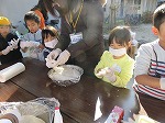 すいとん作りも手伝いました。すいとんをコネコネ丸めました。「おだんごみたーい!」「これこのまま食べられるの?」「これを炊いてもらうとおいしいよ」と教えてもらい楽しみに丸めていました。