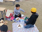 12月2日 土曜休業日を利用して、野外での諸活動を楽しみながらその技術を身につけ、親子や地域で触れ合う機会をつくろう!とふるさと体験学習に幼稚園のお友達も参加しました。火をおこし、飯盒でご飯を炊いたり、ウィンナーや手羽先、コーンを焼いたり…普段できない貴重な経験ができました。