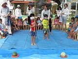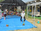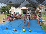 右へ左へ。うまく命中した子どもたちも先生もいて、さすが。