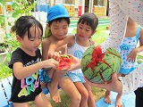 園の畑で収穫した小玉スイカ。夏休みの間も何度も世話にきてくださった