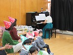ひと足早いクリスマス会をしました。朝から楽しみに登園してきた子ども達!ピアニスト高橋さんの演奏を聞かせてもらいました。みんながよく知っているクリスマスメドレーやアラジンの曲で口ずさんだり、手拍子をしたりして楽しみました。