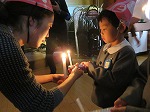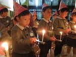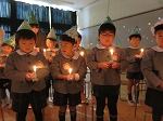 キャンドルサービスをしました。園長先生から先生達へ。先生達から子ども達へ。ろうそくの火がともり、幻想的な雰囲気になりました。