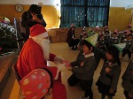 どこからか鈴の音が聞こえてきました。「あっ!サンタさん!」「本当に来た!」目を輝かせて大喜びの子ども達でした。「サンタさんのおうちはどこですか?」「サンタさんの好きな色は何色ですか?」「トナカイさんはどうして空を飛べるの?」とサンタさんに質問しました。大きな袋を抱えてきてくれたサンタクロース!一人一人にプレゼントを手渡してもらいました。