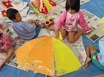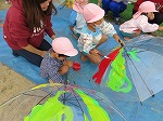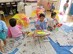 4歳児すみれ組のお友だち☆色を楽しんだり、模様を描いて自分だけの傘を作りました。