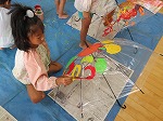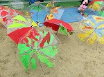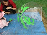 アクリル絵の具という初めて使う絵の具を使って一人一人が自分だけの傘を作りました。