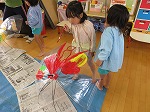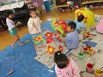 5歳児ゆり組のお友だち☆友だちと工夫しながら作り上げました。