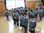 「あけましておめでとう」「お年玉もらったよ」「幼稚園久しぶりやわ」と登園を喜んで来てくれました。3学期始業式では担任の先生から名前を呼んでもらい、元気いっぱい返事をしました。園長先生のお話を聞き、3学期が始まることを知りました。みんなで♪たこの歌を歌い、先生たちは♪1月1日の歌を歌い、新しい年が来たことを確認しました。