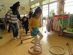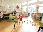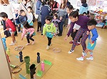 11月25日 幼稚園が忍者屋敷に変身☆「親子で遊ぼうでござる!」お母さんたちが企画してくださり、忍者になって楽しみました。ぽっこりのすけの輪投げやボーリングコーナーやどんでん返しコーナー、巻物落とし、紙皿的あてコーナーを親子で回り、「修行」をしました。