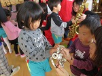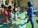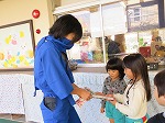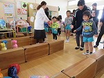 窓に「おたずねもの」の貼り紙…「はるなにんじゃをさがせ!」みんなで探しました。「いたいた!」はるな忍者からシールをもらいました。