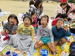 お楽しみ第3弾!いいお天気の中、園庭でみんな一緒にお昼ご飯を食べました。