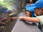 水族館に着くとオオサンショウウオが迎えてくれました。水槽に顔を近づけ、魚の泳いでいる姿を友達とよく見ました。