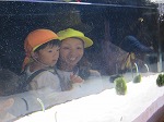 待ちに待った秋の遠足!京都水族館に行きました。登園すると大型バスが幼稚園の前に停まっていて、「大きなバスや!」「遠足楽しみ!」「早くいきたいな」と大喜びの子ども達でした。♪大型バスにのってます~とみんなでバスごっこの歌を歌ったり、手遊びをしたりしながらバスの時間を楽しみました。車窓から大好きな「しまかぜ」が見えたり、京都タワーが見えたりして、指を指してみんなで喜びました。