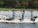 楽しみにしていたイルカショーも見ました。イルカがジャンプしたり、回ったり、泳いだりする姿を目を輝かせて見ていました。歓声&拍手もとても大きかったです。
