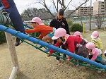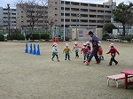 年少うさぎ組も元気いっぱい!広い園庭をコーチのまねっこしながらついていきました。