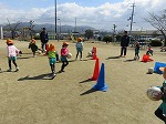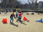 「何回ボール蹴れるかな」「コーン倒れるかな?」友だちと楽しみました。