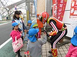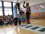 …とそこに!!ヒカルマン登場!!ヒカルマンと一緒に交通安全について学びました。