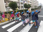 「横断歩道は真ん中を歩くこと」「止まって右左、うしろを確認してから渡ること」「手をつないで歩くこと」を確認しました。