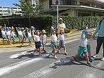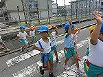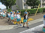 9月16日の敬老の日を前におじいちゃん、おばあちゃんにハガキを送ろう!と心を込めてハガキを書きました。年長ゆり組と年中すみれ組は、そのハガキを持って河原郵便局まで歩いて行きました。夏休み、京田辺市教育部、建設部の方と一緒に散歩コースに危険がないか点検したことを受けて、交通ルールや公共のマナーを知らせ安全教育の意識を高めてきました。一人一人交通ルールを思い出しながら歩きました。