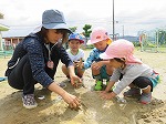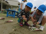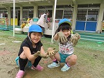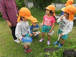 カエル、カタツムリ、バッタ、ダンゴムシなどたくさんの虫たちも園庭にやってきて、虫探しを楽しみました。