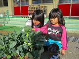 寒くても元気に年越し、幼稚園の野菜たち。今日はお弁当時のお味噌汁に変身。