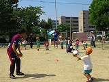 今年もサンガからお兄さんとお姉さんのコーチ来園。元気にボール遊び。自分の