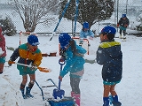 出現し思いきり雪遊び。ふと気がついたんです。明日は生活発表会、大丈夫かなあ・・・