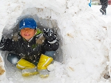 作り出し。年長組は力を合わせて何と、かまくらを作っちゃいました。、タライのそりも