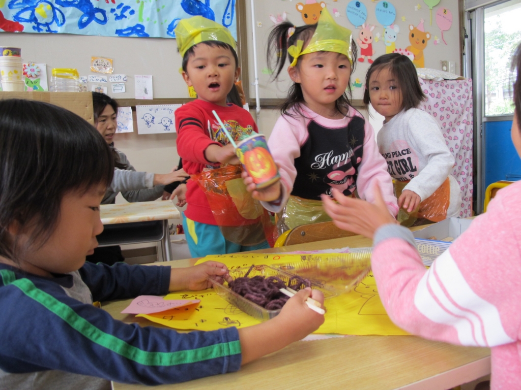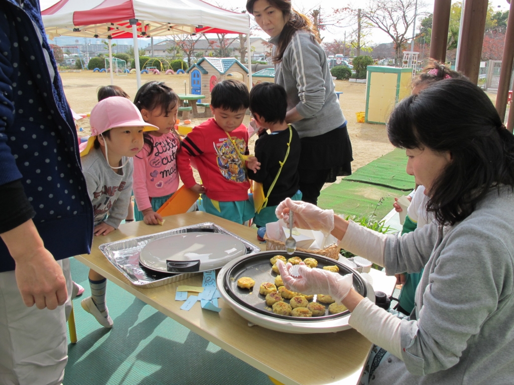 きてくれました。園で収穫したサツマイモのお焼きもたくさん並んで