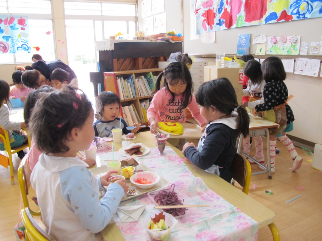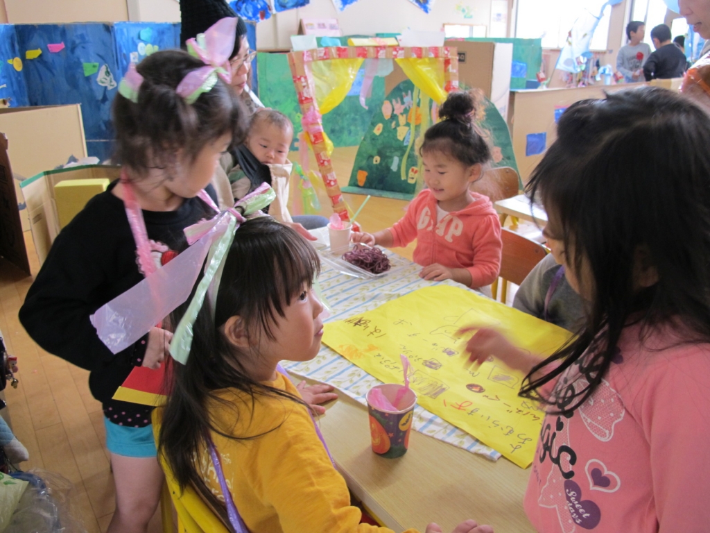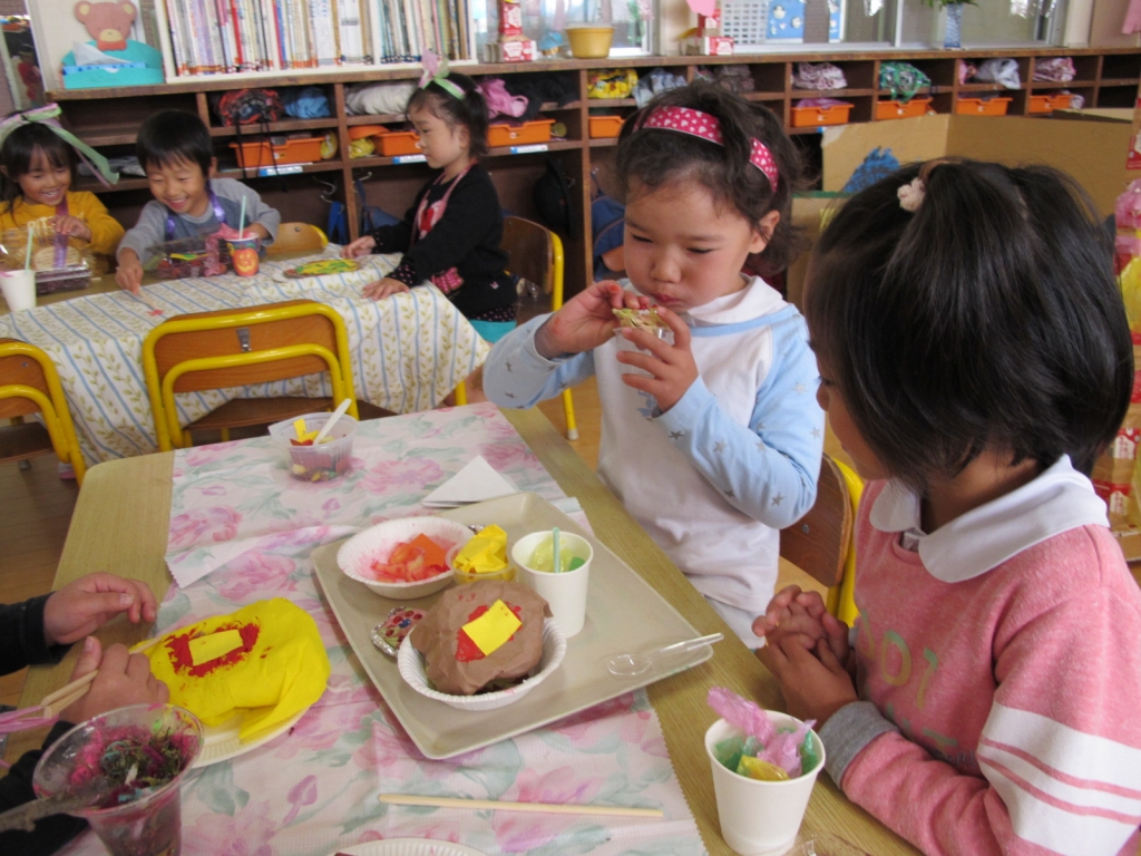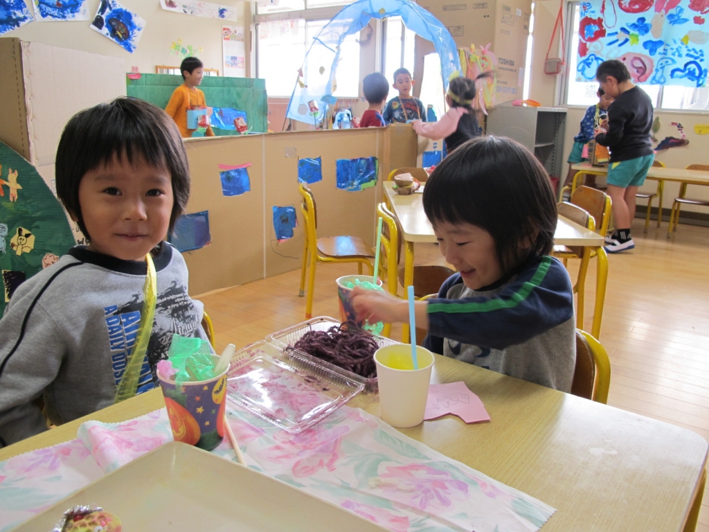 わーい、お店は大繁盛。年少組も年長組もイルカのレストランへ