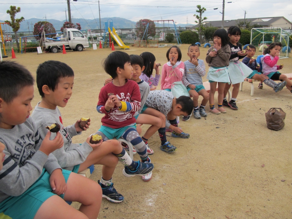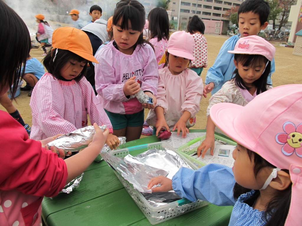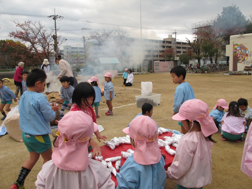 芋大会。今年も藤井さんから届けて頂いた松ぼっくりをたくさん使って、火起こ