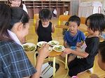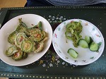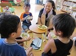 今年は猛暑にもかかわらず野菜が一杯鈴なり。特にゴーヤとプチトマトは数え切れないくらい食べました。ゴーヤの天ぷらは大人気。今日の登園日はキュウリもサンドマメも獲れて大盛り野菜を会食。夏を元気に乗り切れそう・・・