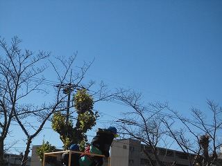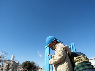 子どもたちは、お祝いの風船が見えるかと高いところを探して空を見上げていました。