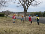 近鉄電車が見える子どもたちのお気に入りの広場です。今日も「しまかぜ」が通り大喜びでした。遊具がない広場ですが、遊びを見つけ自然の中で思い切り遊びました。