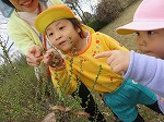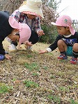 早いもので今日から3月です。今日はお母さん方が環境整備で幼稚園をきれいにしてくださいました。「お願いします」とみんなでお願いし、みんなでお散歩に行きました。春・夏・秋・冬…1年間何度も行った大好きな木津川堤防広場に今日は行く道を変えて行きました。お茶畑・碾茶工場前を通り、畑の農作物を見ながら歩きました。