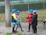 次は幼稚園前の西神屋公園に行きました。毎日見ているお馴染みの公園!みんなで行きたいね。と話していたので喜んでいました。大きな滑り台を滑ったり、公園周りをマラソンごっこしたり、ドンじゃんけんをしたり…いろいろな遊び方で一人一人が楽しみました。