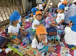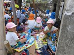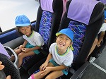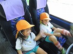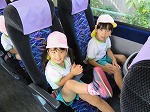 大きなバスに大興奮の子どもたち☆河原保育所分園のお友だちがみんなで「いってらっしゃいー」と見送ってくれました。バスの中では「今日、体操してないやん」という声があがり、座ったままで体操を楽しみました(^^♪歌を歌ったり、クイズをしたりして、バスの中も楽しいひとときでした。