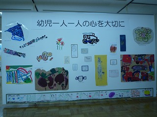市立幼稚園に通う全園児の絵や製作物など、子ども達が生活や遊びの中で得た感動を描いたものや、学びにつながる豊かな感性を表現した作品を展示しています。