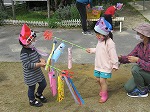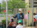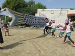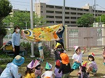集いの後、こいのぼりをもって満面の笑顔で園庭を走っていました。