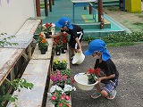 植えた後にはたっぷりお水をあげて…  きれいなお花がいっぱいになりました。これから暑くなるけど、水やりがんばります!  |