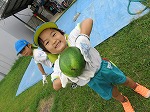 たくさん収穫できて、みんなで喜びました。「大きい順番に並べてみよう!」「はいポーズ!」冬瓜を初めて見るお友達も多かったです。毎日水やりをやって、身近に生長を感じながら育てた野菜の収穫は、とても嬉しいものです。これからも、このような心動く感動体験をたくさんしていきたいと感じています。