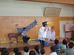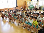 園長先生から七夕についての話を聞き、先生達の寸劇「七夕物語」を見ました。