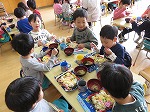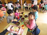 園長先生からおひなまつりについてお話を聞きました。ひな人形を飾る訳、ひしもちについて、ちらし寿司を食べる訳などなどいろいろなことを教えてもらいました。先生達のペープサートをみんなで真剣に見ています。
