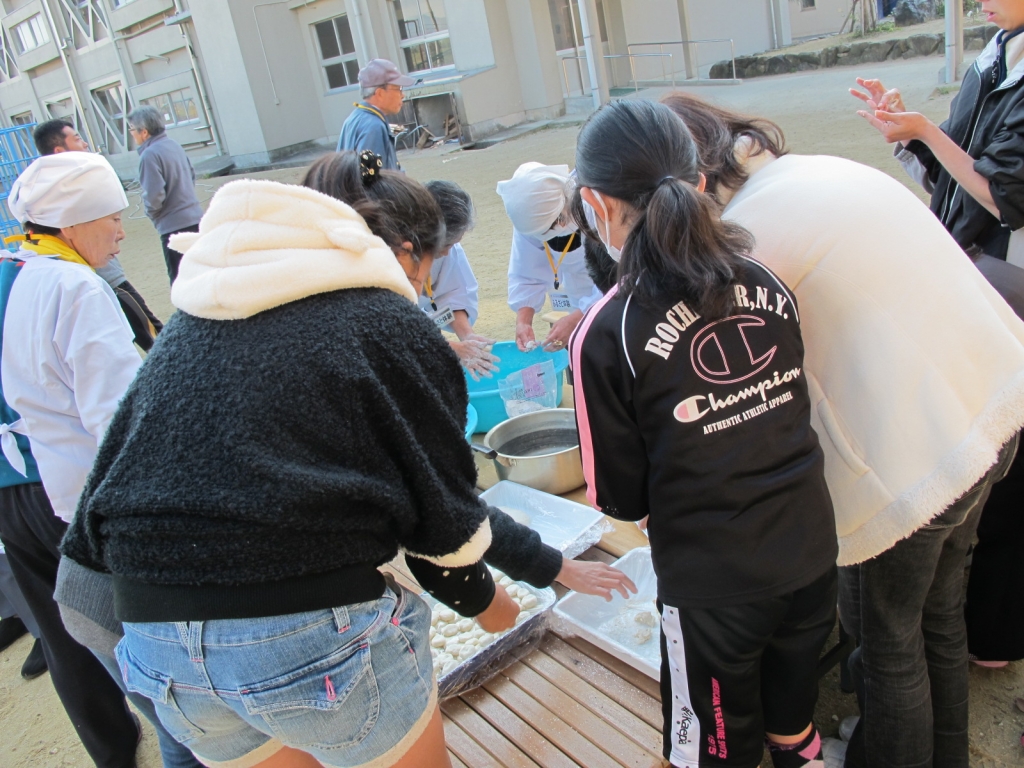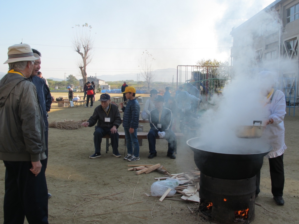 の方々特製のすいとんです。火起こしも中々堂に入った