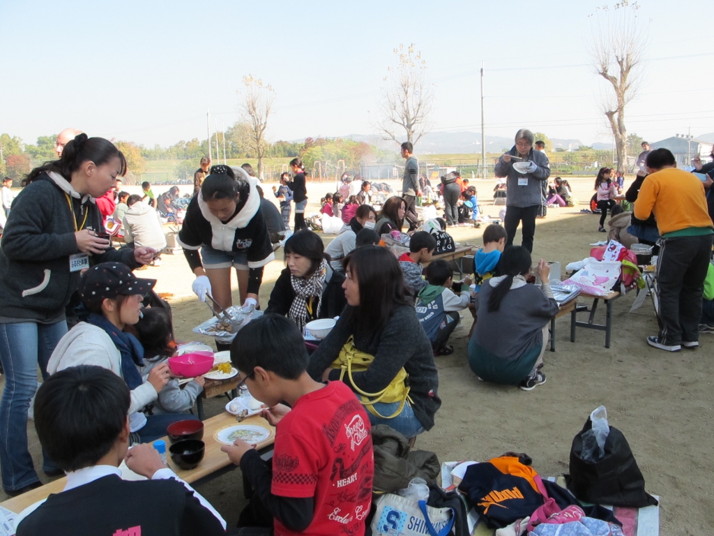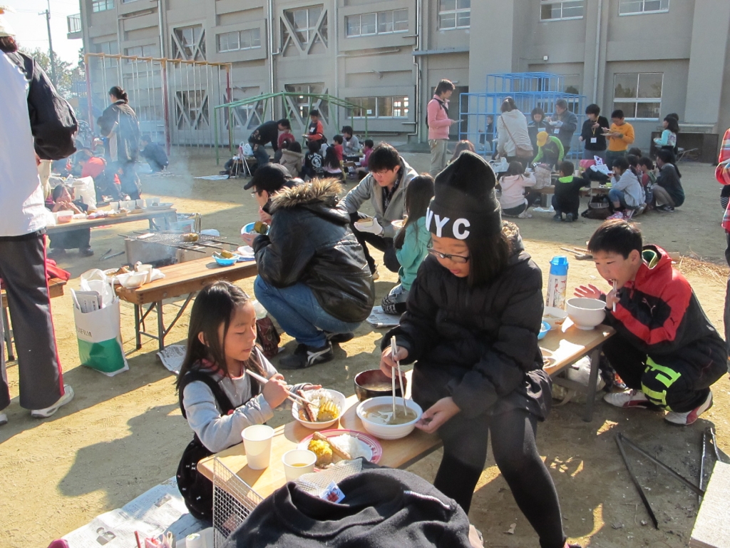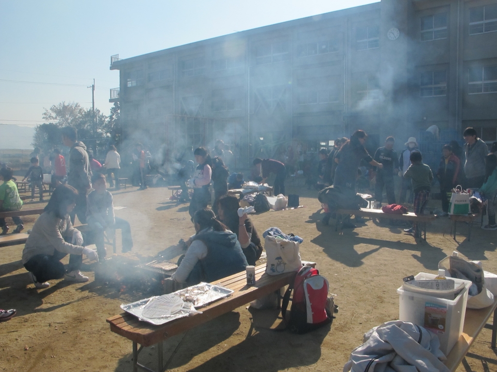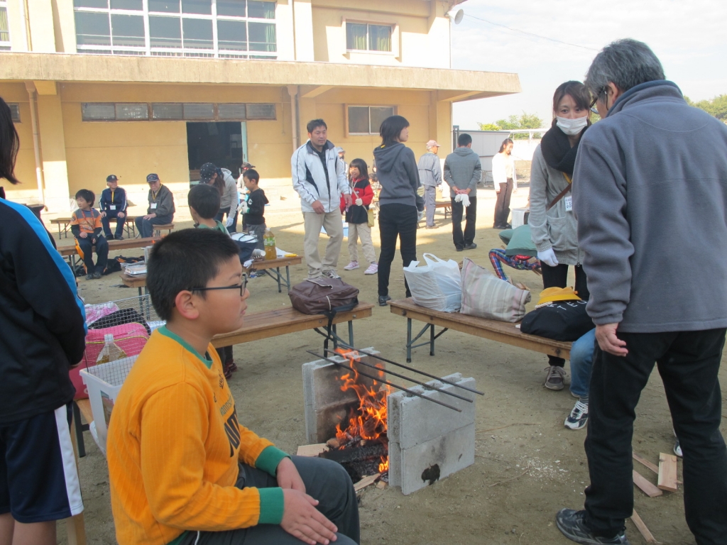 飯ごうで炊くごはん。割り木で焼き肉、そして団地の自治会